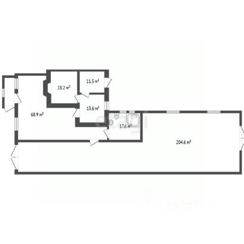 -три спальни, 16,8 м2 / 16,3 м2 / 11,5 м2;