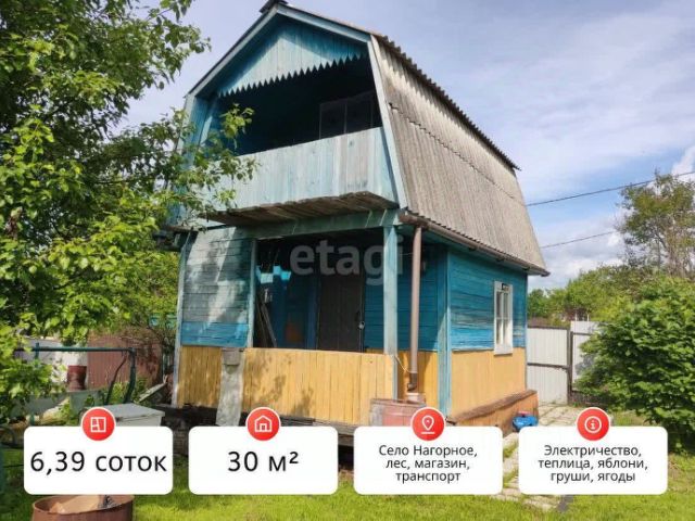 В продаже уютная дача в селе Нагорное, где можно отдохнуть от городской суеты, насладиться свежим воздухом и провести незабываемое время с семьей и друзьями! Ухоженный участок: 6 соток, кустарники, грядки, теплица, детская площадка и зона отдыха. В саду растут яблони, груша, жимолость, смородина, крыжовник, вишня, клубника, шиповник. Рядом расположены живописные сопки и густой лес. B доме два этажа, новым владельцам останутся диван, стол, шкаф, холодильник, раскладушки, тумба, стулья. На улице биотуалет, летний душ, склад для инструментов. Дружелюбные соседи сделают Ваше пребывание на даче еще более комфортным. Не упустите возможность приобрести свой уголок на природе недалеко от города! Записаться на просмотр можно прямо сейчас! Код пользователя: 179157 Номер в базе: 8660985