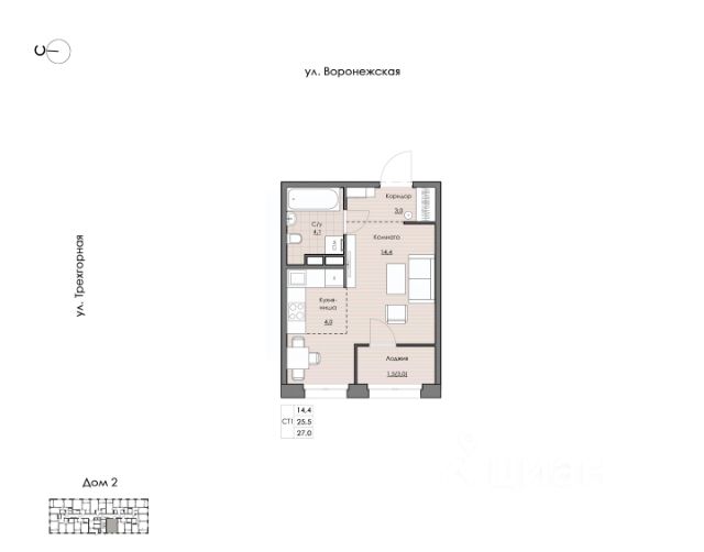 Компактная и функциональная студия для молодой семьи и людей, ценящих спокойную и уединённую жизнь. Кухня-ниша легко вместит всю необходимую технику для реализации ваших кулинарных фантазий. Гостиная позволит зонировать место для отдыха, учёбы и работы. Лоджия станет отличным местом для релакса.