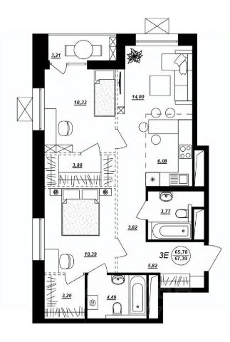 Планировка: Просторная кухня-гостиная, три изолированные комнаты.