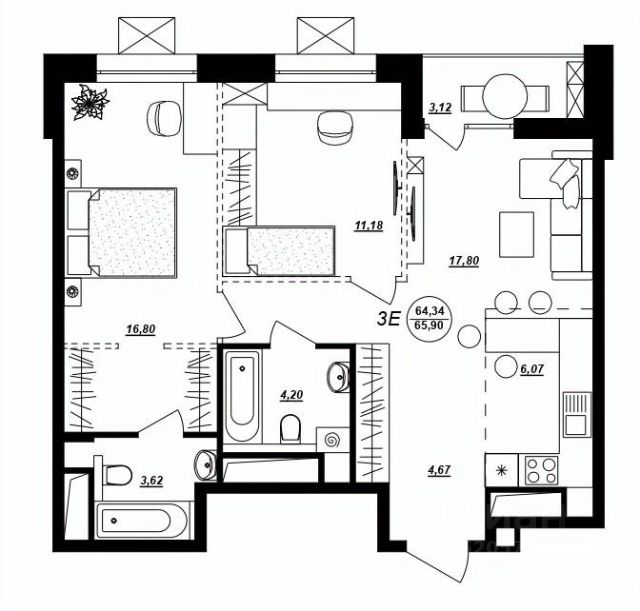 Отделка: Предчистовая (экономьте до 700 000 ₽ на ремонте!). Уже есть: остекление, радиаторы, оштукатуренные стены, разводка электрики.