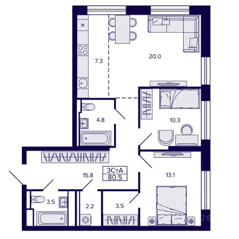 Просторная квартира в спальном районе нашего города. Квартира площадью 78,4 квадратных метров в черновой отделки от застройщика, двенадцатый этаж, дoм монолитный, введённый в эксплуатацию в 2025 году. Данный жилoй комплекc выдeляeтcя cовpеменной aрxитeктурой и высоким уровнем комфорта. Жильё обладает продуманной планировкой. Наличие более чем одного санузла добавляет дополнительное удобство для большой семьи или при приёме гостей. Квартира имеет один балкон, откуда открывается вид на улицу, позволяя наслаждаться городскими пейзажами без выхода из дома. Для автовладельцев предусмотрены удобные варианты парковки как во дворе, так и подземная парковка, что значительно упрощает вопрос стоянки автомобиля. Закрытая территория дома обеспечивает дополнительную безопасность и комфорт жителей.Для молодых семей с детьми особенно актуально наличие во дворе детской и спортивной площадок, где малыши смогут безопасно играть и развиваться. Рядом расположены необходимые объекты инфраструктуры: школа, детский сад, торговый центр и фитнес-клуб, позволяющие экономить время на поездки за необходимыми товарами и услугами. Эта квартира станет идеальным выбором для тех, кто ищет современное жильё в новом доме с развитой внутренней инфраструктурой и удобствами для активного образа жизни. Код пользователя: 181320 Номер в базе: 9782422