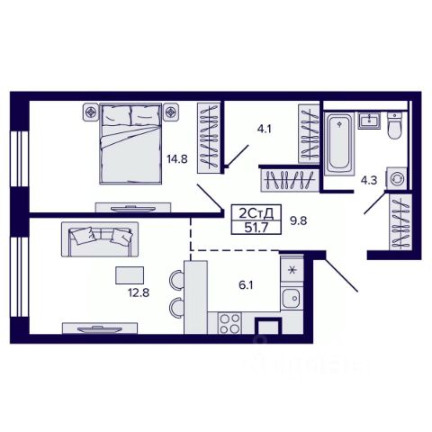 Классическая планировка однокомнатной квартиры; Просторная кухня-столовая позволит воплотить свои кулинарные фантазии и с комфортом встретить гостей; В гардеробной нише с гостиной легко сложить вещи и не тратиться на покупку шкафов и комодов;