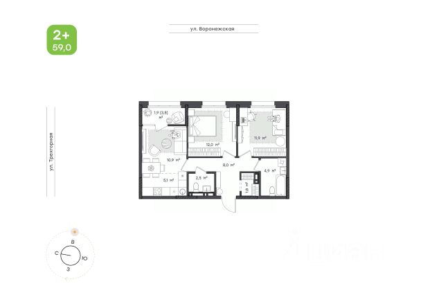 Двухкомнатная квартира евроформата Два санузла - это удобно, когда так важно утром быстро собраться на работу. В квартире гардеробная комната, все окна выходят на ул.Воронежская. В кухне-гостиной есть теплая лоджия, где можно организовать зеленую зону или рабочее место.