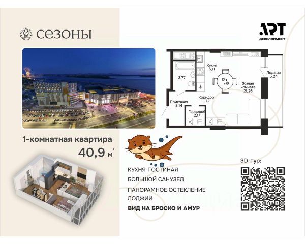 Жилой комплекс из трех домов находится в оживленном районе с удобной логистикой. Из окон открываются изумительные виды на Амур, Дендрарий и город. В развитом районе уже есть все, что обеспечивает комфорт и помогает жить с удовольствием. При этом, нам удалось создать проект с большим уединенным закрытым двором и коммерческой инфраструктурой в стилобатной части для решения ежедневных и особых задач, развлечений и отдыха. - 3 минуты до центра на авто - 11 маршрутов общественного транспорта - 2 минуты пешком до Броско и аквапарка - 5 минут пешком до школы - 3 минуты пешком до детского сада - 30 шагов до паркинга в доме - 1 взгляд до вдохновляющих видов ЗАКРЫТАЯ ТЕРРИТОРИЯ Территория двора огорожена забором, и будет много камер. Доступ на территорию будет регулироваться воротами с индивидуальным доступом, отдельно будет настроен доступ в дом, паркинг, велосипедные и колясочные пространства. ИНТЕРЕСНЫЙ ДВОР, АТМОСФЕРНЫЕ ПРОСТРАНСТВА ДОМА Стильное пространство холла с высоким потолком, французскими окнами и качественной отделкой. По территории двора ограничен проезд, бОльшая часть парковок находится под землей. Предусмотрены также и гостевые парковки они расположены снаружи комплекса вдоль коммерческих помещений. Авторская детская площадка: длинная горка, тактильная дорожка, батуты, скалодром и канаты. Двор будет уникальным. Есть воркаут-зона для занятий спортом, и есть место где можно почитать книгу и тропа в травах, для создания которой растения с цветением по разным сезонам высадят согласно дендроплану. АРХИТЕКТУРА, ПЛАНИРОВКИ Комплекс состоит из трех зданий переменной этажности, второе и третье здание соединены двухэтажным стилобатом, в котором разместятся компании для ежедневного комфорта жителей дома: магазины, кофейня, салон красоты, детское обучение и досуг. Мы видим ценность в долговечных фасадных решениях, поэтому выбрали сочетание керамогранита и клинкерного кирпича. Предусмотрели ненавязчивую пластику фасада, архитектурную подсветку в специальных нишах. В ЖК заложены квартиры свободной планировки для воплощения вашего сценария жизни в диапазоне от 25 до 122 кв.м. ИЗ ТЕПЛОЙ КВАРТИРЫ В ТЕПЛЫЙ ПАРКИНГ В подземный паркинг спускаются все три быстрых лифта. Пробок не предвидится даже в час пик. КАЧЕСТВЕННОЕ ОКРУЖЕНИЕ От Сезонов до школы ноль перекрестков, рядом можно поесть разнообразно и вкусно, сводить ребенка в игровое пространство, сходить на шопинг. Аквапарк, ресторан и кинотеатр через дорогу. У вас много возможностей. Все продажи ведутся через безопасные эскроу-счета. Купить квартиру на 13 этаже в Хабаровске.