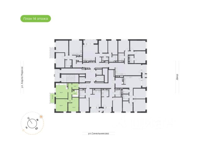 Во дворе, в самом центре расположен фонтан. По периметру двора велосипедная дорожка. Также во дворе есть зоны для детей, зоны для отдыха и работы с WI-FI