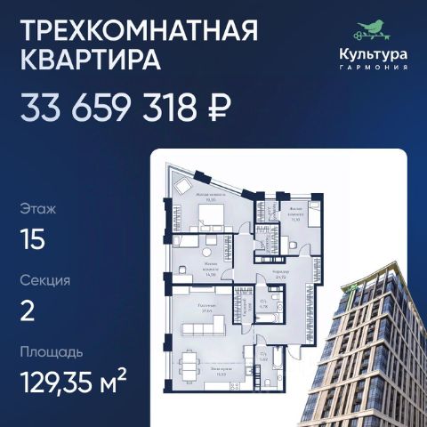 ЖК "Культура. Гармония" — Настоящий бизнес-класс в центре Хабаровска! Стильные входные группы, холлы, разумное количество квартир на этаже и эргономичные планировки. Жилой комплекс — находится между историческим центром и Brosko Mall. Идеальная локация (всё пешком): - 1 мин до питомника Шуранова. - 6 мин до Brosko Mall. -10 мин до Дендрария. Зелёный стандарт Green Zoom: экономия энергии, вид на город, парк и реку — лучшее украшение вашей квартиры! Архитектура премиум-класса: две высотные секции на стилобате. Ассиметричный дизайн жилого квартала и трехмерный фасад внесут значительный вклад в формирование современного лица города. Всё для комфорта и общения: - Большой "Соседский центр": коворкинг, переговорки, детские зоны, лаунж и летнее кафе — решайте сами! - Безопасность: круглосуточная охрана и камеры. Ориентировочные цены: - 1-комнатные: от 15 972 218 ₽ (от 70.4 м²) - 2-комнатные: от 20 492 549 ₽ (от 89.37 м²) - 3-комнатные: от 32 417 141 ₽ (от 121.83 м²) Гибкие способы покупки: - Льготные ипотеки (Дальневосточная, Семейная, IT) - Рассрочка до 12 месяцев - Trade-In Ваш дом бизнес-класса в центре ждёт! Звоните и пишите нам — забронируем просмотр.