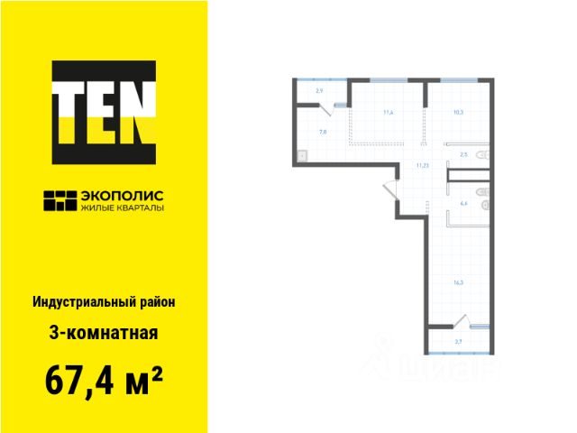 Осенние скидки! Выгода до 1,9 миллиона рублей. Стартовые цены - от 7,5 миллионов рублей. Квартира 86,69 м2 свободной планировки с видами на город.