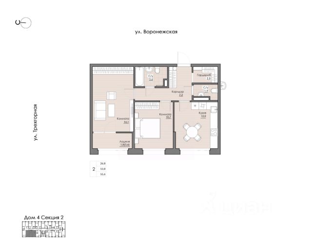 Входная металлическая дверь. Просторный тамбур на три квартиры, домофон. Чистый подъезд, большой грузовой лифт.