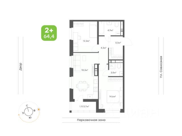 Дом расположен в тихом, зеленом районе (Железнодорожный) на ул. Совхозная. Во дворе — ухоженная территория, детская площадка, парковка для машин. Соседи дружелюбные, подъезд в порядке.