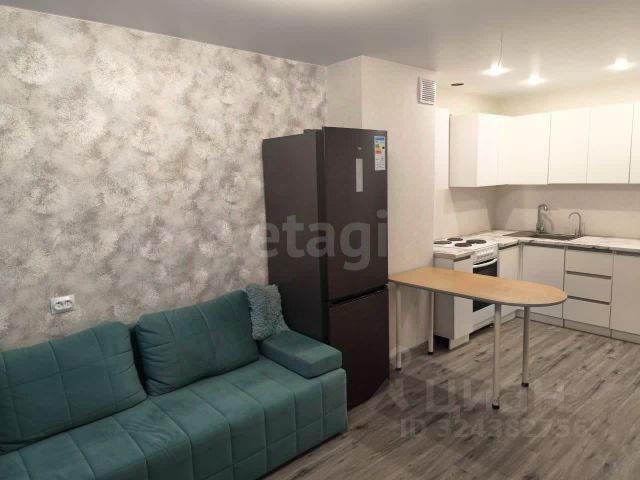 В квартире установлены кондиционер (сплит-система), холодильник, стиральная машина, водонагреватель. Из мебели: кухонный гарнитур, системы хранения для одежды, спальные места.
