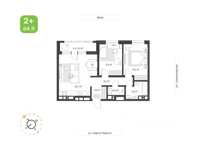 3,5-комнатная квартира для большой семьи с двумя детьми; Кухня-гостиная с лёгкостью вместит всю желаемуе мебель для готовки, отдыха и приёма гостей; Родительская мастер-спальня с собственным санузлом и гардеробной нишей; Детские спальни позволят делать расстановку мебели под "настроение"; Большое количество гардеробных ниш сэкономит деньги на покупку дополнительных шкафов и комодов; Окна на две стороны света обеспечат квартиры естественным освещением; Два санузла