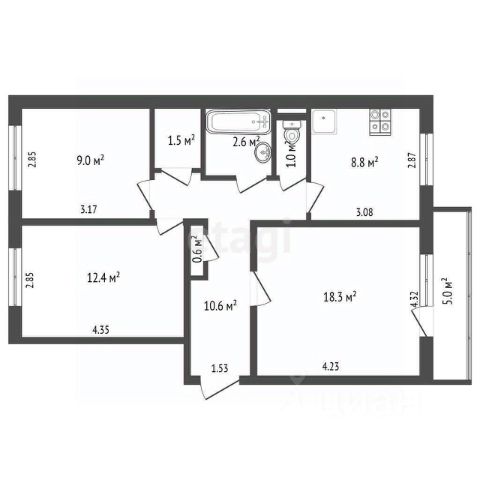 Общая площадь квартиры -66 кв.м, из которых кухня-мечта любой хозяйки 8,8 кв.м! Кухня квадратная, большая и светлая, с выходом на балкон. Все остальные комнаты раздельные, так же просторные и хорошей геометрии 12.,5, 12 и 14.8 кв.м, а так же широкий длинный коридор 11,4 кв.м, где можно кататься на велосипеде! В зале есть кладовая по всей длине комнаты ( за счет нее можно увеличить площадь зала).