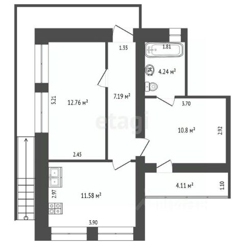 • ✅ Объект наибольшей площади: 55,1 м²