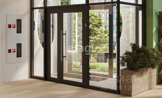 Состояние - после строителей: стены оштукатурены, на полу бетонная стяжка, введены коммуникации, установлены радиаторы (краны для регулировки температуры), входная дверь с накладкой из шпона, пожарная сигнализация, заведено электричество до щитка. На этаже установлены счётчики учёта тепловой энергии на каждую квартиру.