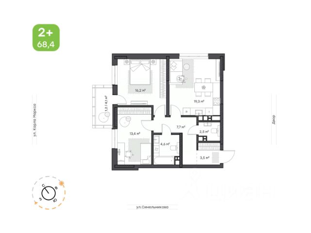 Большая 3,5-комнатная квартира для большой семьи; Кухня-гостиная с зонированием мест для готовки и отдыха помогут с комфортом принять гостей или провести семейный ужин; Большое количество гардеробных ниш позволит сократить количество шкафов и комодов и не заставлять пространство мебелью; Окна на две стороны света обеспечат большое количество естественного света; Два санузла;