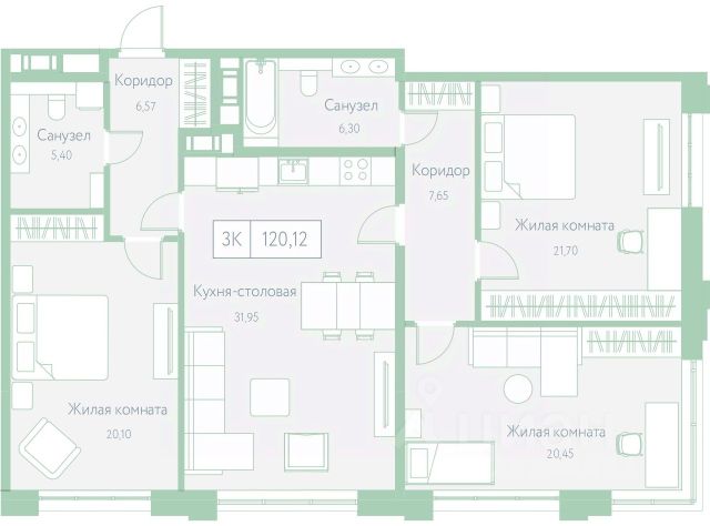 В ЖК заложены квартиры свободной планировки для воплощения вашего сценария жизни в диапазоне от 25 до 122 кв.м.