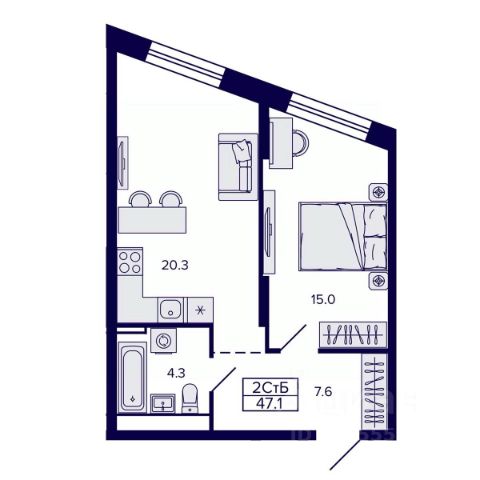 Однокомнатная квартира для пары и людей, ценящих спокойную и уединенную жизнь; Просторная кухня-гостиная с выходом на лоджию Большая спальня позволит расставить мебель по своему желанию; Наличие гардеробной ниши решает проблему покупки шкафа.