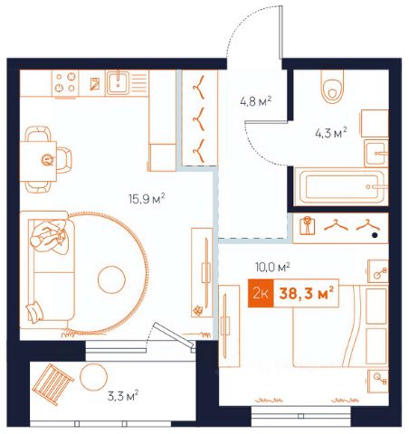 Продается 2-х комнатная квартира, 43,90 кв.м, Хабаровский край, г Комсомольск-на-