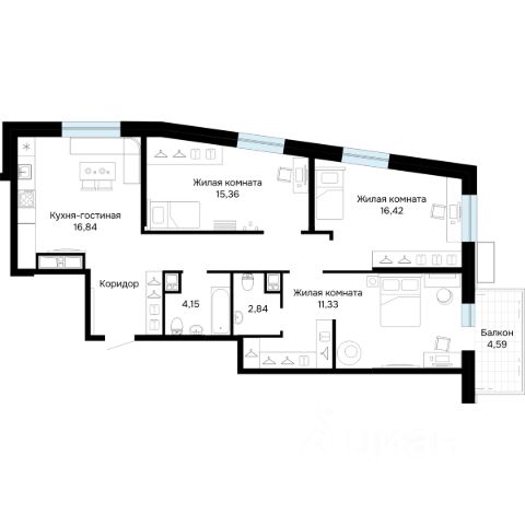 • ✅ Минимальная площадь: 16,4 м²