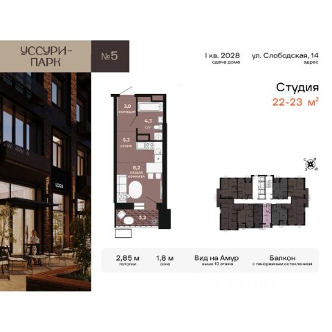 Продаётся квартира-студия площадью 20,29 кв.м на 6 этаже 10 этажного дома (Корпус 11, Секция 1) проекта ПИК Северный парк. Светлый просторный подъезд на уровне земли, функциональная планировка, большие окна, без отделки. "Северный парк" - жилой квартал в развитом Железнодорожном районе Хабаровска с закрытыми дворами-парками, школой, детским садом и спортхабом. До центра города получится добраться за 10 минут на автомобиле. "Северный парк" возводится на пересечении улиц Воронежской и Совхозной, в 10 минутах езды от центра Хабаровска. В проекте будет 30 корпусов. Входы в подъезды "Северного парка" мы сделаем на уровне земли для комфортного перемещения по территории квартала любым способом: пешком, на самокате или с коляской. Благодаря панорамному остеклению, которое пропускает много естественного света, первые этажи будут просторные и светлые. В квартирах предусмотрены большие окна, застеклённые балконы и лоджии - будет светло и уютно даже зимой. Все квартиры сдаются с предчистовой или полной отделкой на выбор. В каждом дворе будет парк - тихое приватное пространство для жителей, где красиво и уютно в любое время года и можно расслабиться после рабочего дня. Через весь квартал протянется широкий пешеходный бульвар с велодорожками, велопарковками, зонами для отдыха, детскими и спортивными площадками. В "Северном парке" будет всё необходимое для комфортной жизни: на первых этажах откроются магазины, кафе и полезные сервисы. Внутри жилого квартала запланировано строительство школы и детского сада. Для удобства жителей предусмотрены многоуровневые паркинги, индивидуальные кладовые и колясочные. Артикул 989189 (Застройщик ООО "СЗ ПРОЕКТ СТРОЙ")