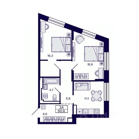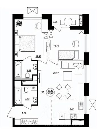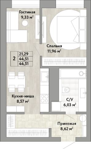 Просторная светлая 1-комнатная квартира 33-36 м². Здесь спальня, кухня-гостиная, комфортный санузел, гардеробная и постирочная, а также лоджия, которую можно оборудовать как зону отдыха или кабинет.