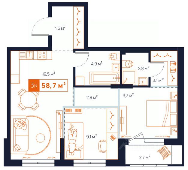 • ✅ Минимальная площадь: 30,8 м²