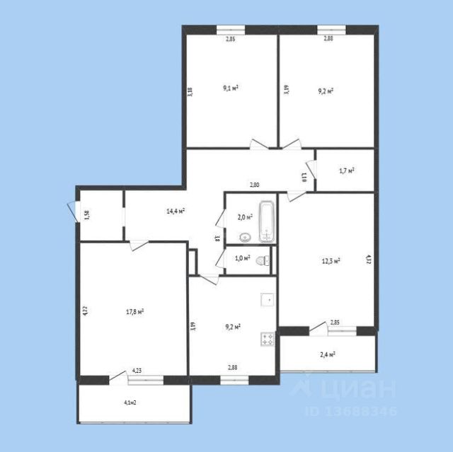 • ✅ Объект наибольшей площади: 91,1 м²