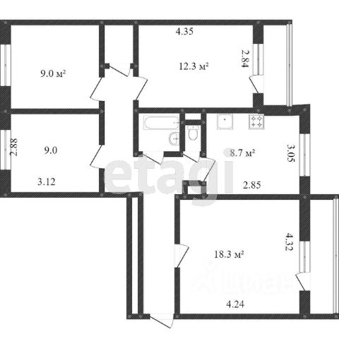 Квартира с предчистовой отделкой. Выведен кабель с розеткой для индукционной плиты. Две естественно-принудительные вентиляции с выключателями, все разводки.