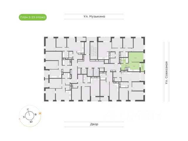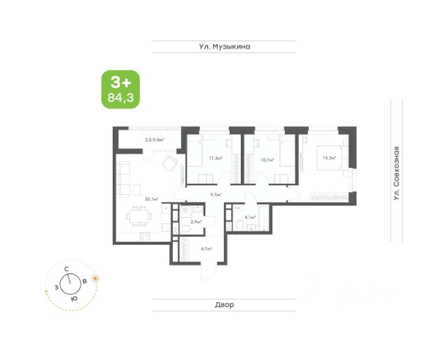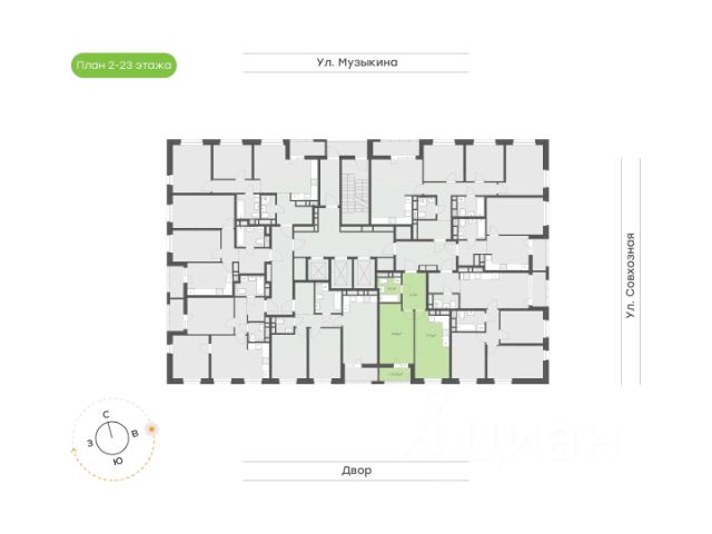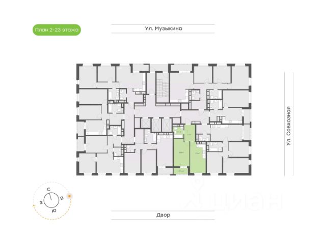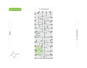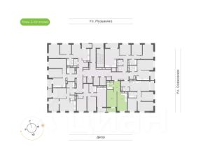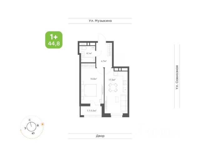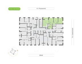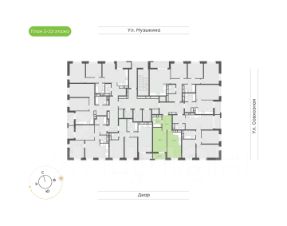 Двухкомнатная квартира для семейной пары • Просторный холл 8,6 кв.м с нишей под гардеробную комнату; • Мастер-спальня с окном, выходящим на улицу Совхозную; • Гостиная с выходом на увеличенную лоджию с угловым остеклением; • Классическая кухня правильной геометрической формы с обеденной зоной у окна для общения и отдыха всей семьи; • Совмещенный санузел 5,5 кв.м.