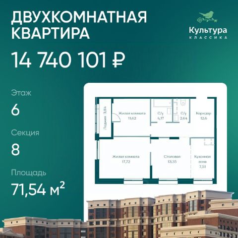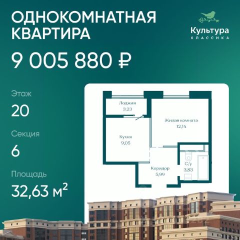 ЖК "Культура Классика" — питерская неоклассика в сердце Хабаровска! Всего 3 минуты пешком до центра: идеальное расположение между ул. Лейтенанта Орлова и Юридическим институтом. В шаговой доступности — живописный дендрарий и уютный ресторан "Эхо". 5 минут на авто — до Brosko Mall, удобные выезды на Волочаевскую и Лейтенанта Орлова. Ваш новый дом — это центр всего! Мы пригласили звёздных архитекторов и дизайнеров, чтобы создать один из самых стильных кварталов Хабаровска. Два двора на 6400 м² для игр, прогулок и отдыха без шума машин. Всё для жизни внутри квартала: - Частный детский сад, кафе и центры развития для детей и взрослых. - Уникальный "Соседский центр": йога, кулинарный клуб, настолки — заводите друзей и хобби прямо в доме! Актуальные цены: - 1-комнатные: от 8 810 100 ₽ (от 32.63 м²) - 2-комнатные: от 13 273 781 ₽ (от 67.76 м²) - 3-комнатные: от 15 065 175 ₽ (от 74.22 м²) Гибкие способы покупки: - Льготные ипотеки (Дальневосточная, Семейная, IT) - Рассрочка до 24 месяцев - Trade-In Звоните или пишите — подберём идеальный вариант под вас.