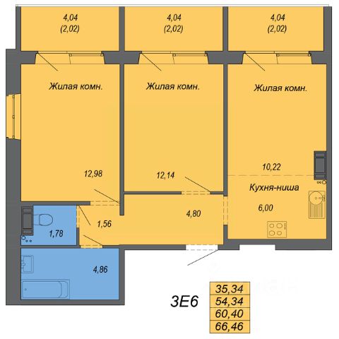 Продаётся 3-комнатная квартира в строящемся доме (Дом 1), срок сдачи: II-кв. 2027, общей площадью 66.46 кв.м., на 4 этаже. Новый жилой комплекс от Специализированного застройщика "ДВ Кристалл расположен по адресу: г. Хабаровск по ул. Совхозная.