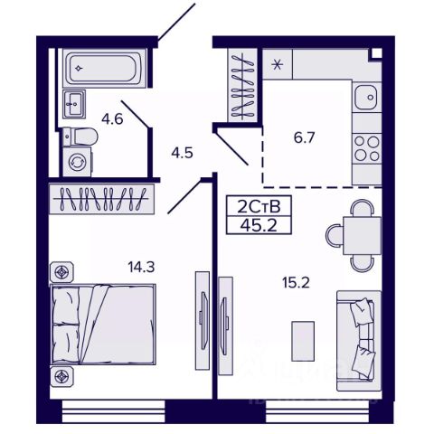Продаётся 2-комнатная квартира в строящемся доме (Корпус 4), срок сдачи: II-кв. 2028, общей площадью 45.24 кв.м., на 2 этаже. Новый жилой комплекс "Самородный квартал" от Специализированного застройщика "ВИРА 27" расположен в г. Хабаровск по ул. Карла Маркса.