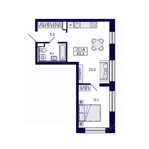 Продаётся 2-комнатная квартира в строящемся доме (Корпус 1), срок сдачи: II-кв. 2028, общей площадью 43.33 кв.м., на 3 этаже. Новый жилой комплекс "Самородный квартал" от Специализированного застройщика "ВИРА 27" расположен в г. Хабаровск по ул. Карла Маркса.