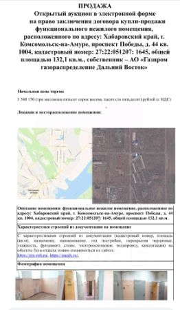 Принадлежит предприятию и ПРОДАЕТСЯ НА ЭЛЕКТРОННЫХ ТОРГАХ на площадке ЭТП РФ, Номер извещения BNKOA00013755