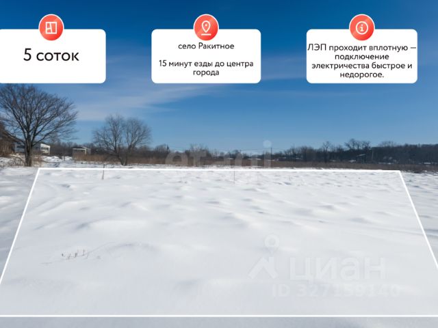 Ваш личный уголок тишины всего в 15 минутах от города! Участок 7 соток (5 +2 дополнительно ) под ключ. Мечтаете просыпаться под пение птиц, а не под шум магистрали? Хотите свой дом, где воздух чистый, а соседи — друзья? Это предложение именно для вас! Продается участок общей площадью 7 соток (5 сот. + 2 сот. дополнительно) в живописном селе Ракитное. Это не просто земля — это готовый фундамент для вашей новой жизни. Почему этот участок — идеален? Готов к стройке немедленно: Ровный рельеф, без перепадов. Чистое поле, где уже можно ставить проект дома. Все коммуникации рядом: ЛЭП проходит вплотную — подключение электричества быстрое и недорогое. Идеальная логистика: Всего 15 минут на авто до центра Хабаровска и удобной развязки. Вы живете за городом, но остаетесь в ритме мегаполиса. Юридическая чистота: Межевание сделано, границы четкие. Один собственник. Подходит под все льготные ипотеки (Семейная, Дальневосточная). Что можно построить? 7 соток — золотая середина. Хватит места для уютного коттеджа, бани, зоны отдыха с мангалом и небольшого сада. Тишина сельской местности сочетается с развитой инфраструктурой села Ракитное (магазины, школа, детский сад, аптеки, поликлиника). Район живой, многие уже построились и живут круглый год. Успейте забрать лучший кусочек! Район активно застраивается, свободных участков с таким рельефом и локацией остается всё меньше. Есть возможность приобретения смежного участка 8 соток. Звоните прямо сейчас! Покажу участок, расскажу про соседей и помогу с расчетами по ипотеке! Код пользователя: 197146 Номер в базе: 11824981