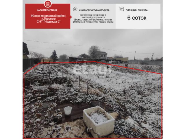 Продается уникальный земельный участок в живописном поселке Горького! Этот участок площадью 6 соток — идеальное место для вашего будущего дома или дачи. Он уже межеван и имеет все необходимые документы, что гарантирует легкость сделки. Участок расположен в зоне, где разрешено ведение садоводства и огородничества, что открывает перед вами множество возможностей для реализации ваших идей. На территории уже имеются плодовые насаждения: яблоня, слива, ирга, жимолость, ежевика и малина — вы сможете наслаждаться свежими фруктами прямо у себя на участке! Также присутствует небольшой домик (7,5 м²), который идеально подойдет для хранения инвентаря и садового оборудования. Что касается коммуникаций, то участок обеспечен летним водопроводом для полива, а электричество доступно благодаря столбу, расположенному рядом. Газоснабжение планируется в 2025-2026 годах, что делает этот участок еще более привлекательным для строительства вашего дома. Расположение участка также не может не радовать! До центра города всего 15-20 минут на машине. В шаговой доступности — остановка общественного транспорта, а в 10 минутах пешком находится весь необходимый набор инфраструктуры: школы, детские сады, магазины, поликлиника и аптеки. Это идеальное место для жизни с семьей! Собственник один, документы готовы, полное сопровождение сделки и помощь в одобрении ипотеки — мы позаботимся о том, чтобы процесс покупки прошел максимально комфортно для вас. Не упустите возможность стать владельцем этого замечательного участка! Звоните прямо сейчас, записывайтесь на просмотр и начните строить свой идеальный дом мечты! Код пользователя: 176612 Номер в базе: 8640230