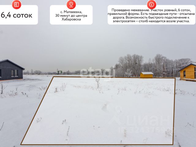 Продам земельный участок 6 соток в собственности в одном из лучших коттеджном поселке Хабаровска Солнечная поляна! Категория участка - Для строительства и эксплуатации жилых домов усадебного типа. Подходит под все ипотеки! Участок идеальной формы, сухой, в окружении красивых домов.. В нашем коттеджном поселке идеальные условия для жизни: огромнейшая детская и спортивная площадки, волейбол, хоккей /футбол, тренажёры такого разнообразия для детей ни в одном кот. поселке города не встретишь! Центральная улица поселка асфальтирована, от нее идут широченные ухоженные внутри поселковые улицы к каждому дому! В 2026 году будет подключение к газу!!! это в 3 раза снизит счета за отопление в зимний период в доме!!! К этому участку есть возможность подключить центральные сети воды и канализации. Кот. поселок Солнечная поляна - расположен всего в 15 минутах езды от ул. Ленина, в 3 минутах от ул. Карла Маркса. Пятерочка, Самбери, ТЦ Стрелка - все в минутах езды! Супермаркет с домашней выпечкой - в шаговой доступности! Рядом школы: с Мирного, Тополево, Горького, 2 школы 47 в районе Авиагородка (5 минут на машине). Детей нашего поселка в школу Мирного возит Бесплатный автобус!!! Детские сады есть как частные, так и городские в 5-10 минутах от нас. Этот участок в нашем поселке станет для вашей семьи счастливым местом! Звоните сейчас- договоримся о просмотре! Продается участок 6 соток в Хабаровском районе Хабаровского края.