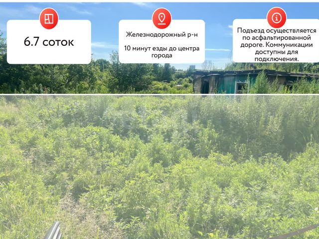 Арт. 73792806 Продам отличный участок, ровный, хорошие подъездные пути. Электричество возможно подключить 15 кВт, столб есть. Подходит под все ипотечные программы, а также для строительства дома! Соседи живут круглогодично. Активно ведется коттеджная застройка. Дороги зимой чистят. Ворота охраны новые. В каждом сезоне отсыпка дорог. Летний водопровод для полива. Возможно бурение скважины. ОПИСАНИЕ: Площадь 603 кв.м Без долгов и обременений, один собственник Кадастровый номер участка 27:23:0041514:44 РАСПОЛОЖЕНИЕ: Участок в Железнодорожном р-не г. Хабаровска, до Восточного обхода по асфальтированной дороге 1,5 км. К СНТ до въезда тоже асфальт. Рядом автобусная остановка "Спутник" (пос.Горького) пешком 750 м