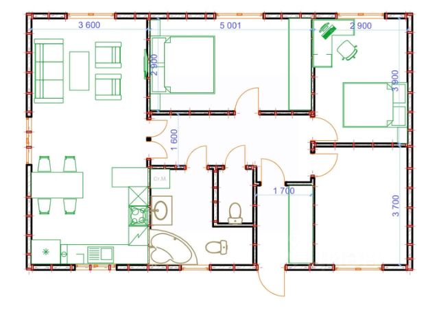 • Стены толщиной 400 мм из отсевблока и качественный утеплитель обеспечивают отличную теплоизоляцию.