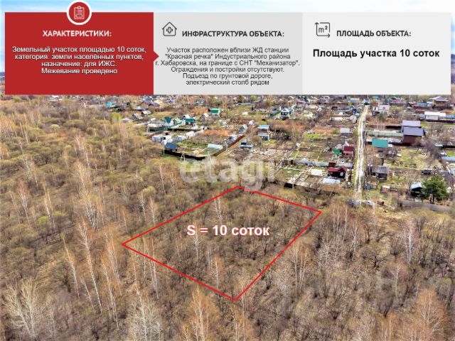 У вас есть уникальная возможность стать обладателем участка мечты в живописном селе Дрофа, в районе "Шанхай". Этот земельный участок площадью 13 соток идеально подойдет для ведения личного подсобного хозяйства. Здесь вы сможете построить свой дом, создать уютный сад или огород, наслаждаться плодородной землей, которая много лет радовала своих владельцев хорошим урожаем. Участок расположен в удобном месте с отличной транспортной доступностью. Возможность подключения к электрическим сетям делает его еще более привлекательным для строительства. Рядом находятся остановка общественного транспорта и магазин "Пчелка", а центр поселка Хор всего в 15 минутах ходьбы. Не упустите шанс приобрести этот замечательный участок и воплотить в жизнь свои мечты о загородном доме или уютном саду. Звоните прямо сейчас и станьте счастливым обладателем этого уникального участка! Код пользователя: 49132 Номер в базе: 8624270