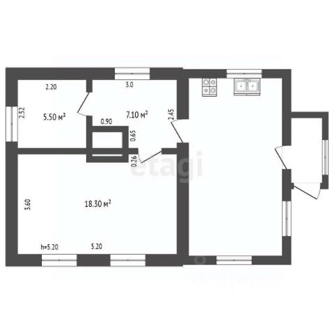 Общая площадь дома 42,2 кв.м, достаточно уютный и комфортный для небольшой семьи или супружеской пары.