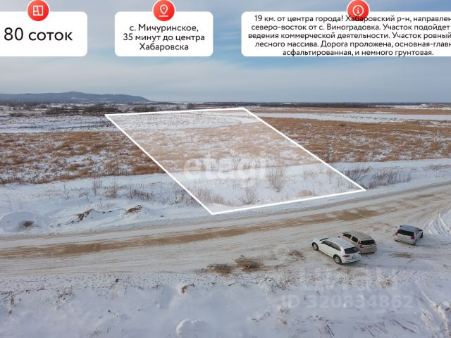 Продается земельный участок 80 соток! 19 км. от центра города! Хабаровский район, направление северо-восток от с. Виноградовка, Мичуринское сельское поселение. Участок подойдет для ведения коммерческой деятельности. Возможен перевод земли в иной вид разрешенного использования. Участок ровный, без лесного массива. Категория Земли сельскохозяйственного назначения. Дорога проложена, основная-главная асфальтированная, и немного грунтовая. Просмотр в любое время по договоренности. Код пользователя: 131023 Номер в базе: 8644401