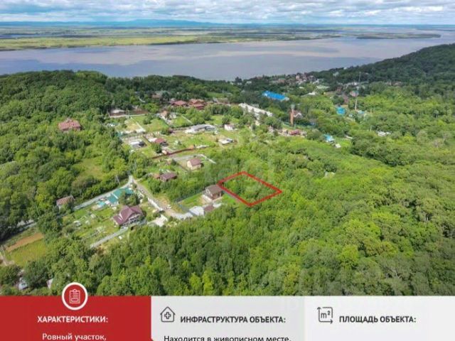 Удобное местоположение — сам коттеджный поселок Восточный Сад находится в районе грушевых садов перед с. Виноградовка Хабаровского р-на и входит в крупное ДНТ Виктория, где в данный момент ведется активная малоэтажная застройка. Проезд через шлагбаум. Третий по счету участок от въезда, участок без забора, но окювечен по периметру, организовано 2 заезда с дороги с проложенными трубами. Ровный рельеф участка позволяет вести строительство или заниматься садоводством без каких-либо ограничений. В левой части участка расположено бетонное здание площадью 18,7 кв. м (не помешает дальнейшей застройке на участке). Строение возведено из бетонной утепленной секции. Смонтирована крыша с кровлей, утеплено и гидроизолировано перекрытие. Участок электрифицирован. На участке располагается столб, на здании закреплен щиток (220 В). Продается земельный участок в селе Виноградовка Вяземского района.