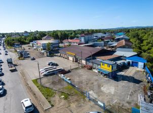 Рядом большой магазин стройматериалов, Бристоль, федеральные компании, пункт техосмотра, автомагазин.