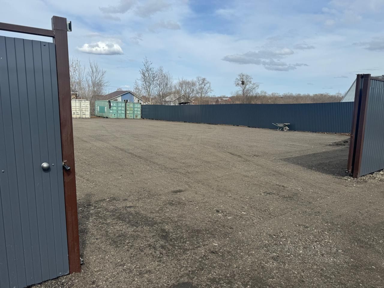 - Дополнительные удобства: Откатные ворота шириной 6 метров обеспечивают удобный въезд на территорию. Поверхность участка выровнена, покрыта мелким скальником и асфальтной крошкой.