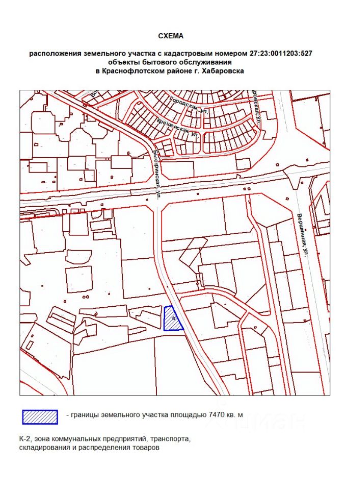 Земельный участок с местоположением: Хабаровский край, Краснофлотский р-н, г. Хабаровск, ул. Тихоокеанская