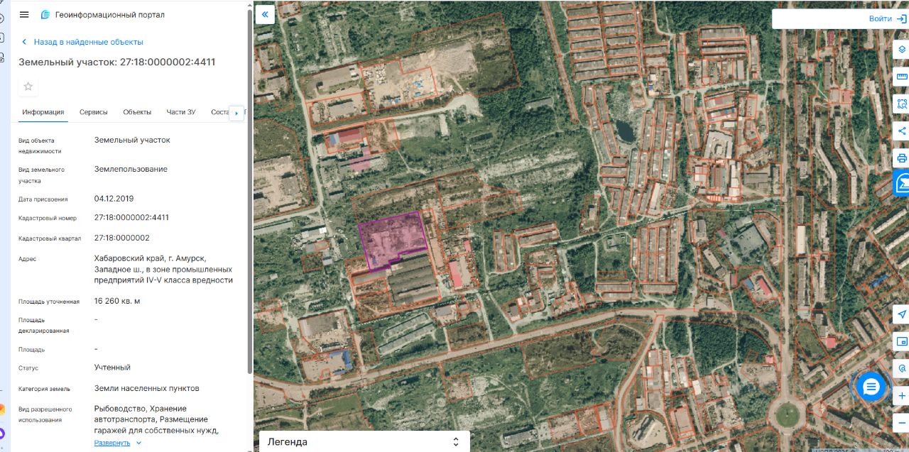 Земельный участок с кадастровым номером: 27:18:0000002:4411, общей площадью 16260 кв. м, расположенного по адресу: Хабаровский край, г. Амурск, Западное ш., в зоне промышленных предприятий IV-V класса вредности, ври установленные в соответствии с ПЗЗ городского поселения "Город Амурск" Амурского муниципального района Хабаровского края, утвержденные решением Совета депутатов городского поселения "Город Амурск" Амурского муниципального района Хабаровского края от 21.02.2012 311.