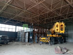 Производственное помещение площадью 2795 кв.м., с антипылевыми полами и высотой потолков 10 метров. Оснащено кран-балкой грузоподъемностью 3,5 тонны + 1,5 тонны.