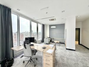 • смешанная планировка: зона open space; 4 кабинета (два из них с панорамным остеклением);